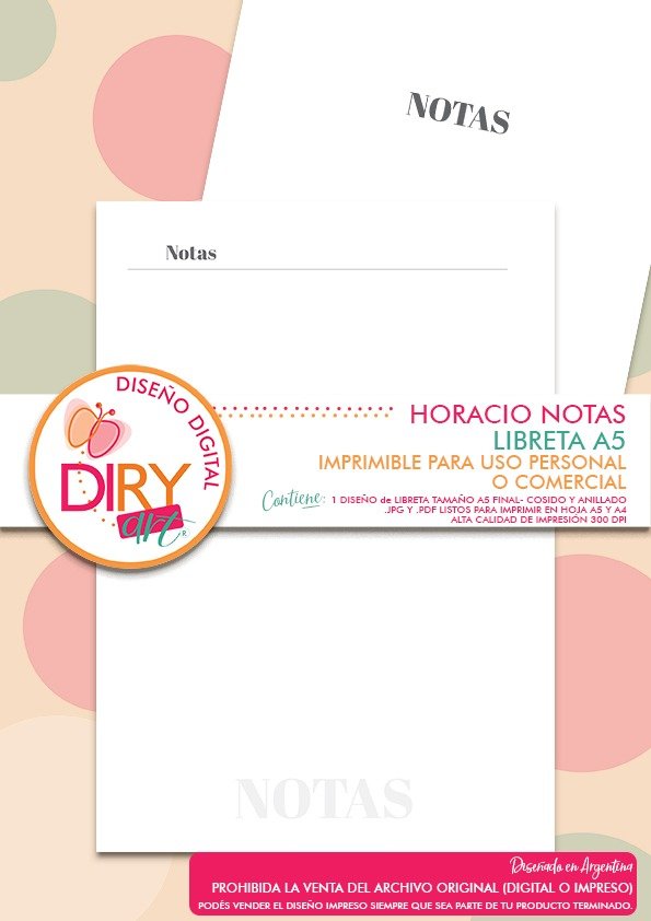 19 páginas lisas con el mismo diseño de la agenda "Horacio"
