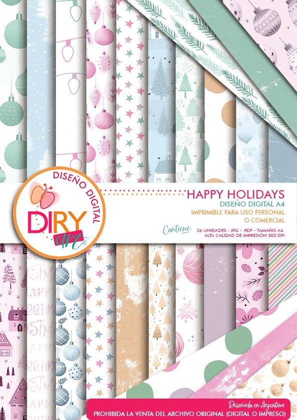 Happy Holidays es una colección de papeles digitales diseñada en tonos pastel y motivos navideños suaves, ideal para acompañar tus proyectos de diciembre con una estética dulce, moderna y luminosa.